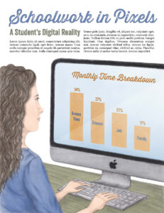 Infographic illustration for a magazine page, created using a combination of traditional graphite pencil, Adobe Fresco, and InDesign